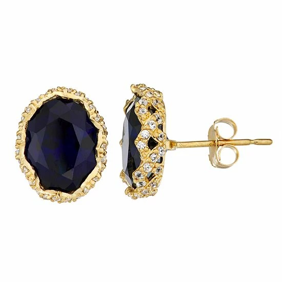 Designs By Gioelli 10k Gold Gemstone Oval Stud Earrings Created Aquamarine
