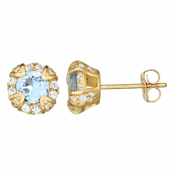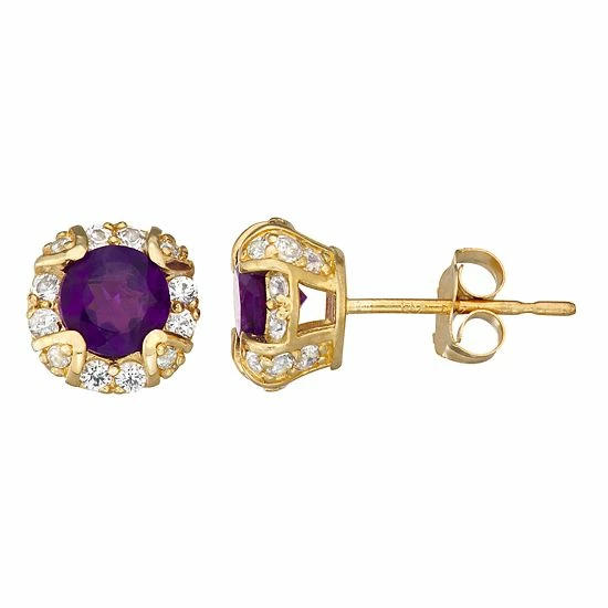 Featuring round-cut stones accented with a halo motif, these 10k gold studs offer a touch of classic elegance.