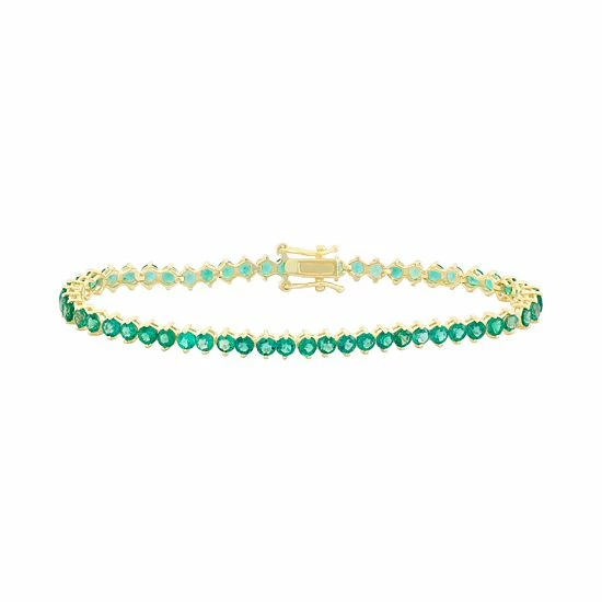 Decorated with round-cut lab-created emerald stones, this 14k gold over silver tennis bracelet offers sensational style.