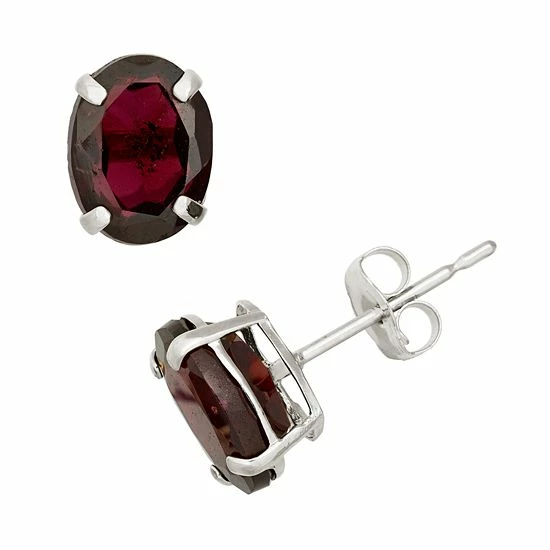 Sparkling oval-cut garnet stones make these 10k white gold stud earrings a dazzling choice.