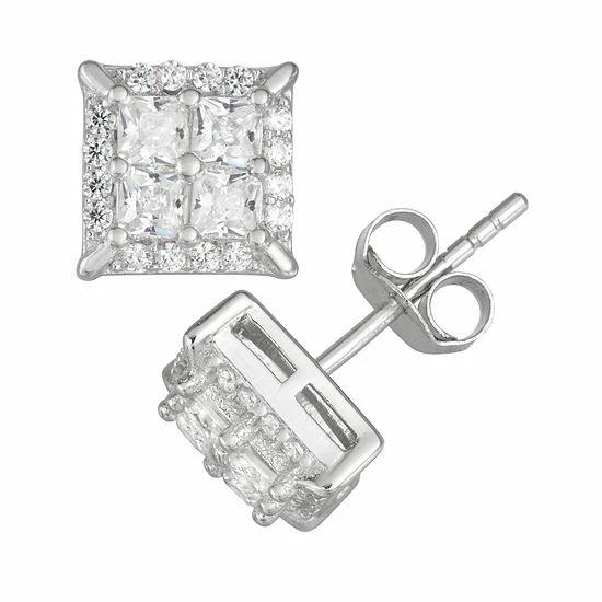 Complete your stylish look with these handsome men’s CZ square stud earrings.