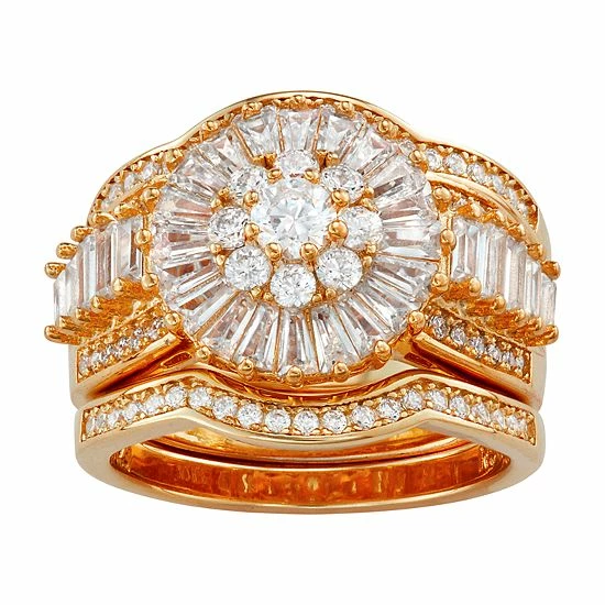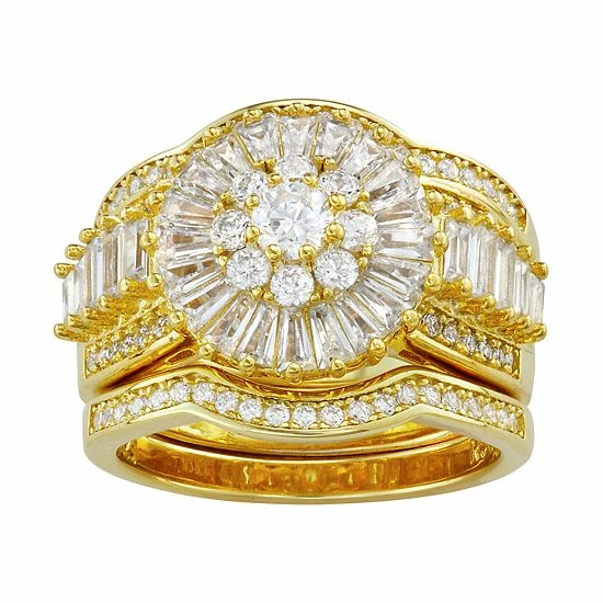 Complete with an engagement ring, and two matching bands, this sterling silver bridal set makes a captivating symbol of your commitment.