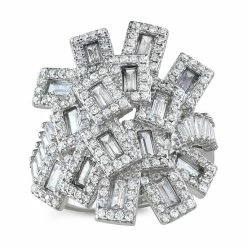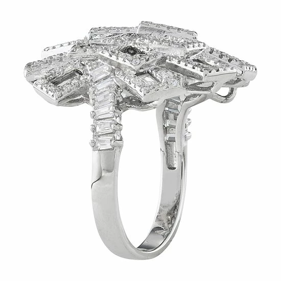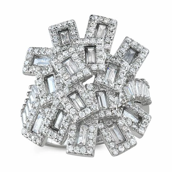 A modern cluster design fashioned from round-cut and baguette-cut cubic zirconia stones makes this ring a stylish must-have.