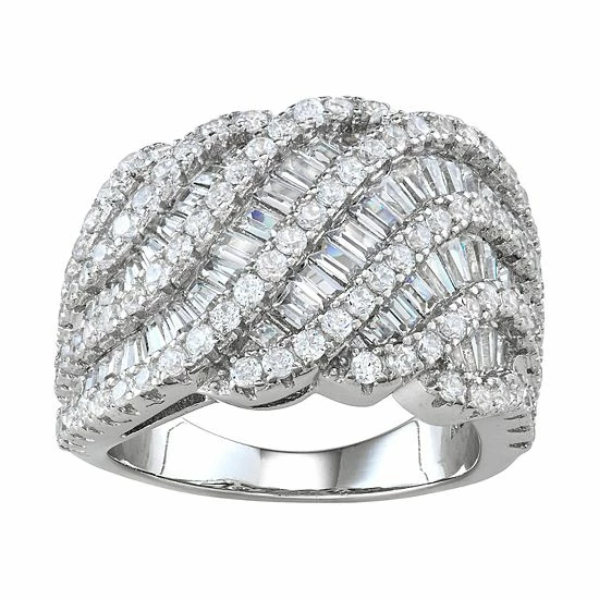 Designs By Gioelli Sterling Silver Cubic Zirconia Layered Wave Ring