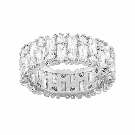 Adorned with illuminating cubic zirconia stones, this sterling silver ring offers eye-catching style.