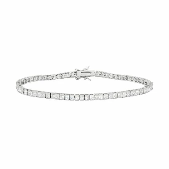 Lined with princess-cut, lab-created white sapphires, this sterling silver tennis bracelet gives your outfit a radiant look.
