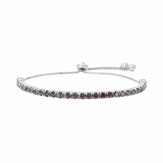 Adorned with round-cut Mystic Fire Topaz stones, this adjustable lariat bracelet abounds with elegant beauty.