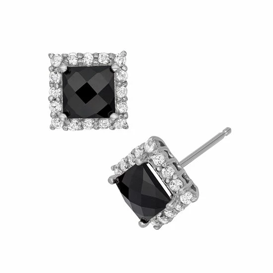 Add a classic touch to your ensemble with these shimmering onyx and lab-created white sapphire stud earrings.