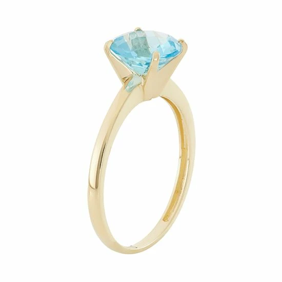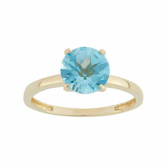 Add stunning sparkle to your ensemble with this 10k gold Swiss blue topaz ring.