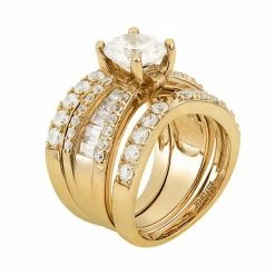 Designs By Gioelli 14k Gold Over Sterling Silver Round Solitaire Ring, Necklace And Stud Earring Set