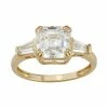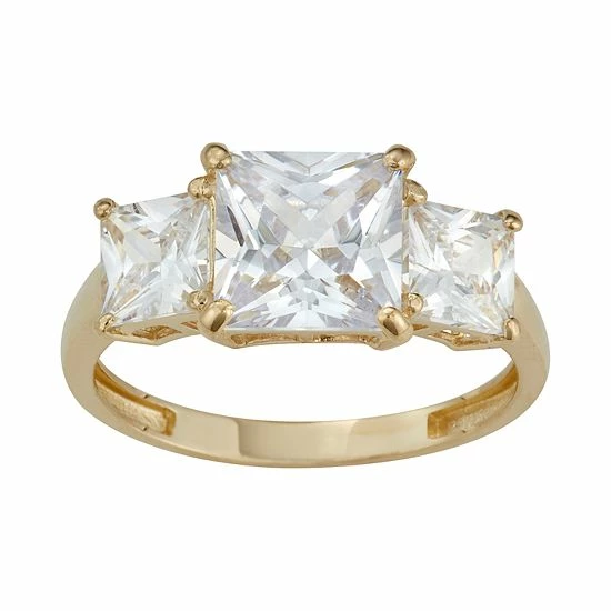 Decorated with a trio of princess-cut cubic zirconia gemstones, this 10k gold ring captivates from every angle.