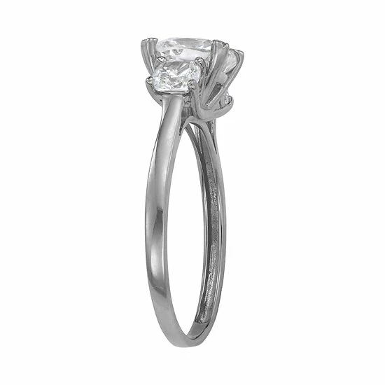 Take her breath away when you present her with this enchanting 10k gold cubic zirconia 3-stone engagement ring.