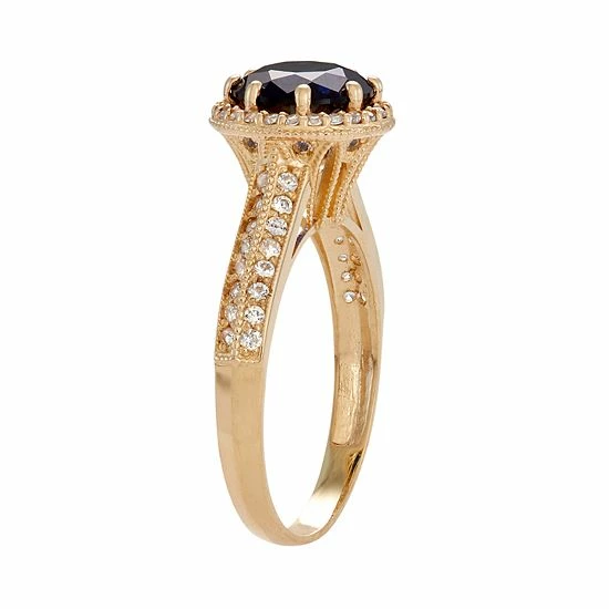Add a touch of timeless style to your ensemble with this gorgeous lab-created blue and white sapphire halo ring.