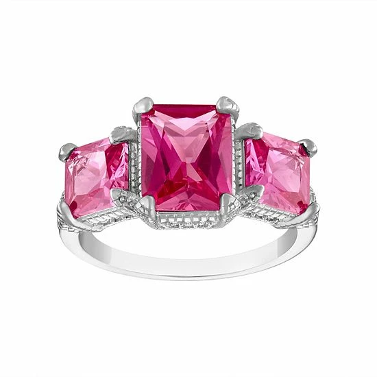 Beautifully appointed with a trio of gemstones, this sterling silver Designs by Gioelli ring is sure to impress.