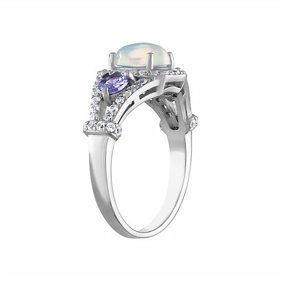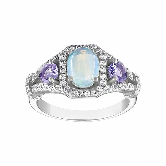 Adorned with an oval-shaped white opal center stone and tanzanite accents, this Designs by Gioelli ring is an elegant accessory for every occasion.